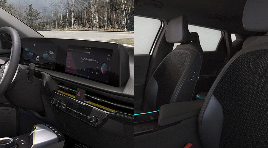The front seats are designed to relax you. While the EV6 is being charged, the front seats can be reclined to a nearly horizontal position, which provide the most comfortable posture while seated in a car.