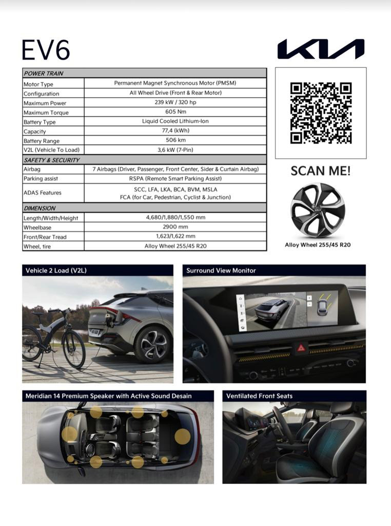 EV6's 77.4kWh battery can enable up to 506km driving when fully charged.